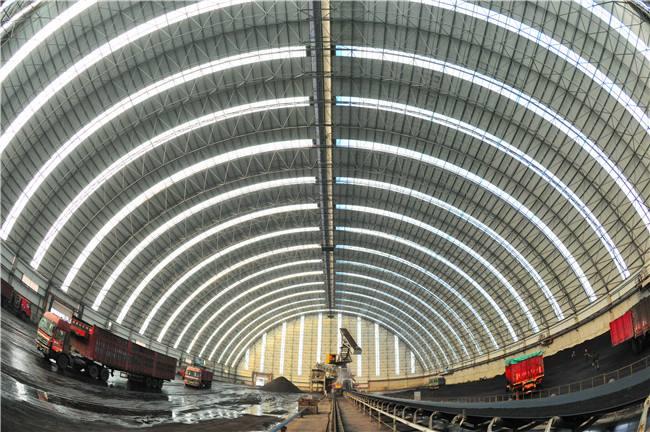 堆场料场封闭式主体结构为新型的钢北安网架结构,维修结构为北安钢结构北安不锈钢板和纤维增强塑料灯具,其外形以北安网架式和平板为主,连接柱北安施工自由,设置喷雾自动喷水系统,从而可以实现棚内所有物料的覆盖,减少物料在运输过程中的损耗,起到防尘的作用,减少工厂关闭后的二氧化硫排放量,50mg/m3颗粒排放量小于10mg/m3,非常适合低能耗。低闭库自动感应反应对库存轮胎进行清洁,确保轮胎不受道路污染;封闭的储存区可从源头控制粉尘污染,控制无序排放。